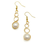4 graduated circles of gold wire are suspended from a gold plated hypoallergenic fishhook. The final circle holds a 10mm freshwater pearl.
