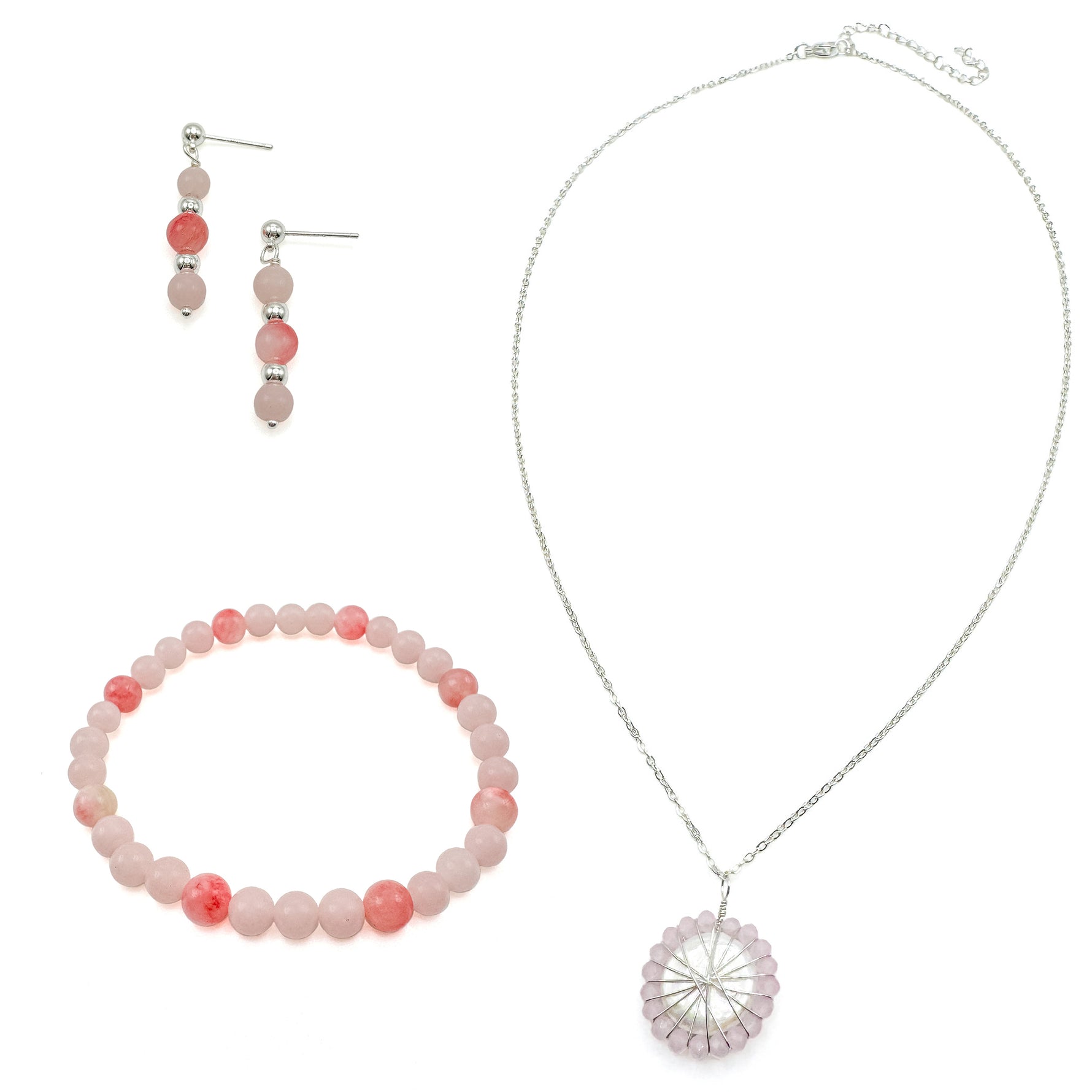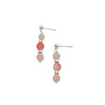 These Rosalyn earrings feature three agate beads in soft and bold pink hues, accented by silver spacer beads, all elegantly stacked on a silver wire. Hanging from a secure silver ball post, they offer a delicate and tasteful touch that complements any outfit with subtle charm. 1 1/4 inch total length