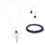 Damsel silver dragonfly and purple tigers eye necklace